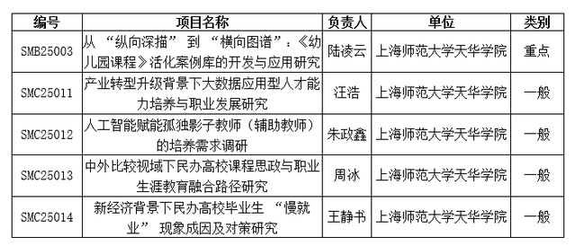为全面贯彻深入贯彻落实《教育强国建设规划纲要(2024—2035年)》,聚焦高质量教育体系建设的理论和现实问题,推动民办教育的理论研究、政策研究、应用研究,上海市民办教育协会组织开展2025年度课题研究项目申报工作。经个人申报、学校遴选、专家组悉心指导、协会评审等环节,我校推荐申报的5项项目全部获得立项,立项率100%。